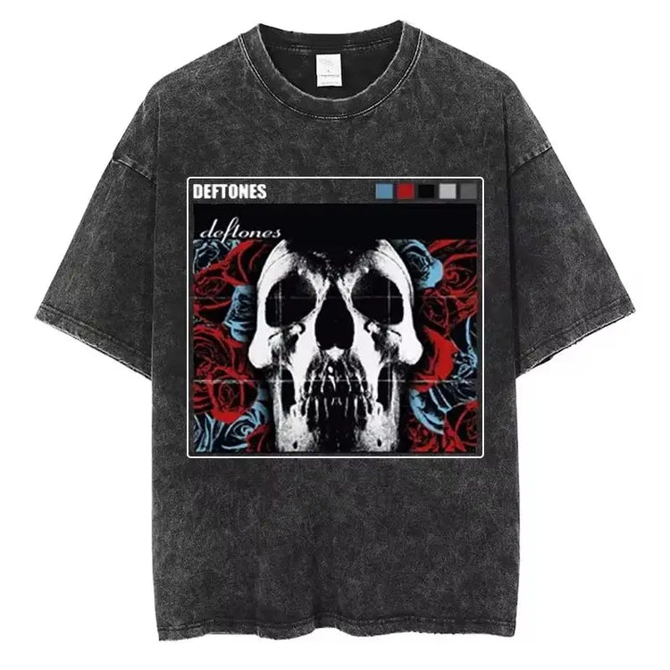 Camiseta masculina Deftones, estilo Y2K, manga curta, gola redonda e visual lavado.